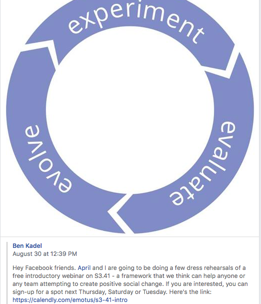 April is working with colleague Ben Kadel of Emotus Operandi to produce and support an Action Network (a Social Innovation) using Sociocracy 3 principles (a method of making more inclusive decisions and creating a productive social context for steering projects).