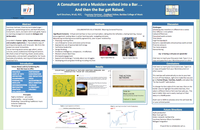 They report significant learning and the emergence of new projects, ideas and approaches, through this association. April reports becoming (unexpectedly) a beginning songwriter, and a much more relaxed, melodic and mindful guitar player. Courtney is learning and applying techniques on strategic planning, project management, goal setting, decision making, time management and action research.
