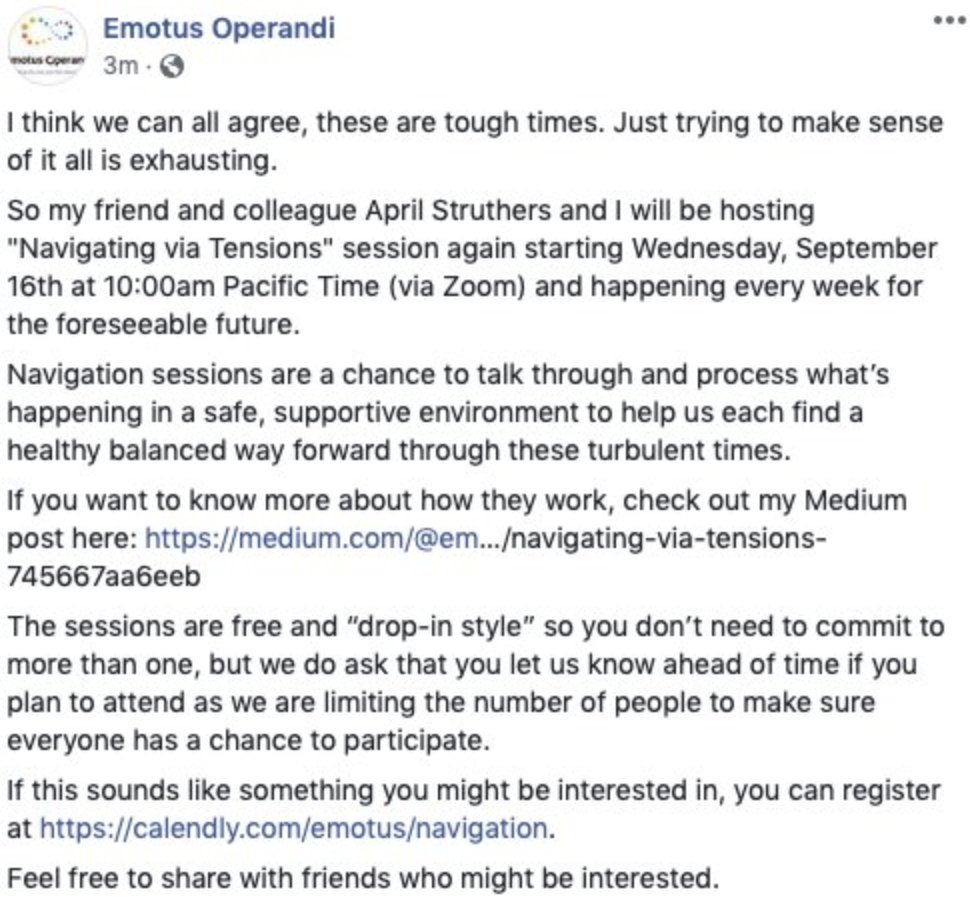 Join us to Navigate your Tensions – Free Drop-In Group with Two Innovative Facilitators 15 September 2020 National